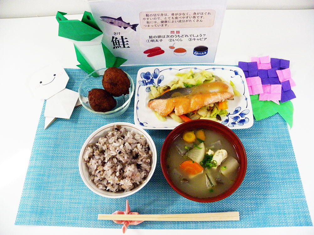 食物アレルギー対応食の対象品目は、卵、牛乳・乳製品、甲殻類、果物(かんきつ類を除く)です。アナフィラキシーショックの既往があり、対応食の提供を希望される場合は、医療機関での食物経口負荷試験の実施と、学校生活管理指導表(アレルギー疾患用)への結果の記載が必要です。