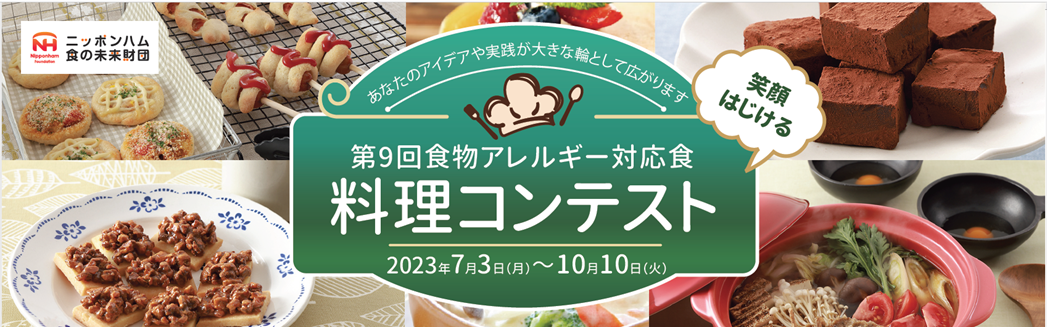 公益財団法人ニッポンハム食の未来財団(事務所:茨城県つくば市、理事長:井手 弘)は「第9回食物アレルギー対応食 料理コンテスト(主催:当財団、後援:厚生労働省・消費者庁・農林水産省、運営協力:女子栄養大学出版部)」を実施し、7月3日(月)よりレシピの募集を開始します。昨年度は704作品の応募がありました。第9回目となる本年は、応募方法を大きく変更し、これまでの応募用紙での申請から、ホームページ内の応募フォームによるオンライン申請のみで募集します。
